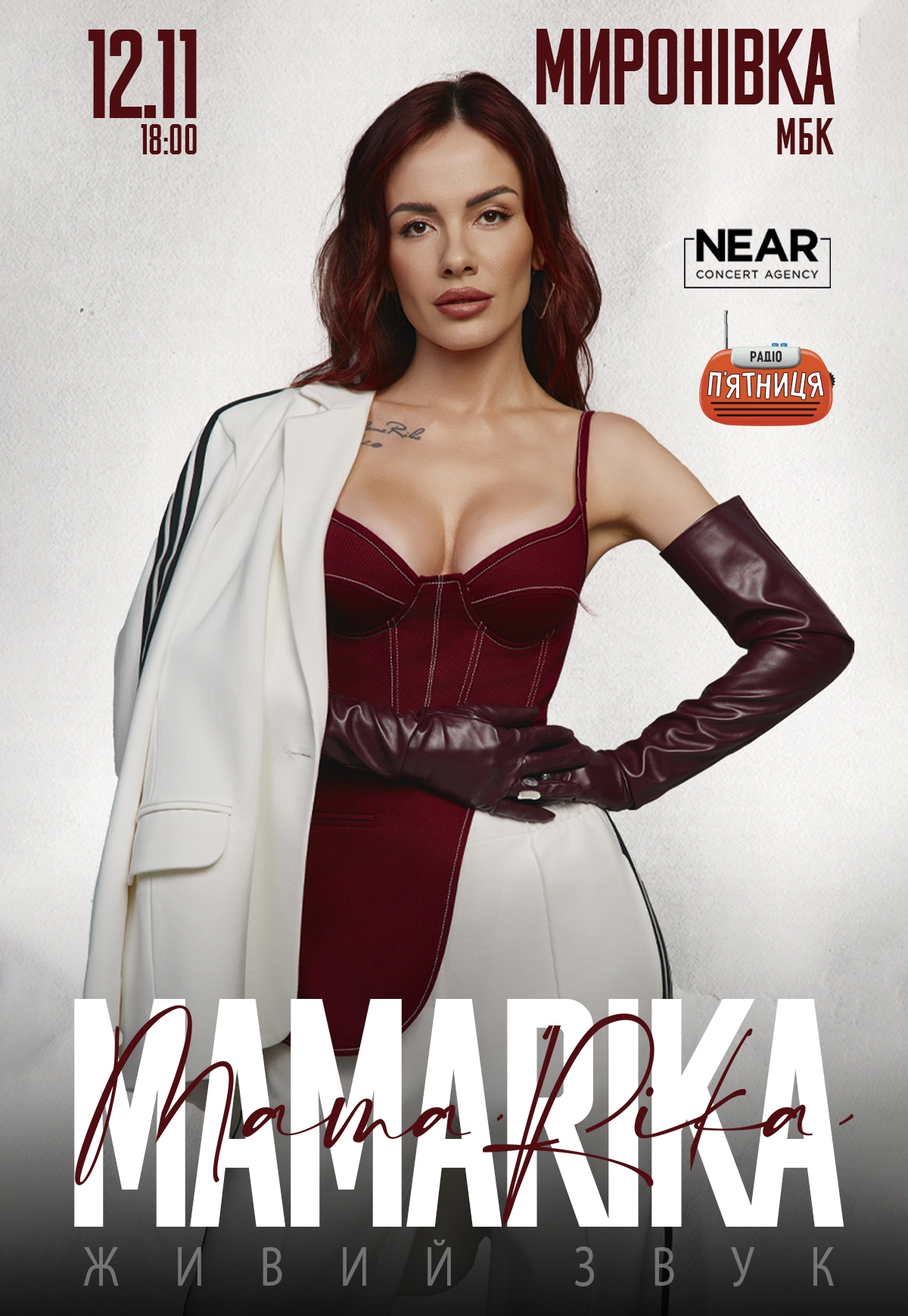 MamaRika відбудеться 12 листопада 2025, 18:00, середа в Миронівський базовий будинок культури. За допомогою сервісу internet-bilet.ua, Ви зможете з легкістю забронювати, замовити та купити квитки на концерт, спектакль, оперу, балет, майстер-класи, спортивні та дитячі заходи, що Вас цікавлять, оплативши їх найбільш зручним для Вас способом: через інтернет банківською карткою VISA/MasterCard, готівкою або кур'єром, якщо зробите замовлення квитка з доставкою.